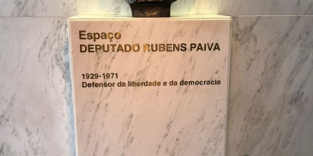 Ato contra PL da Anistia é realizado em frente a busto de Rubens Paiva