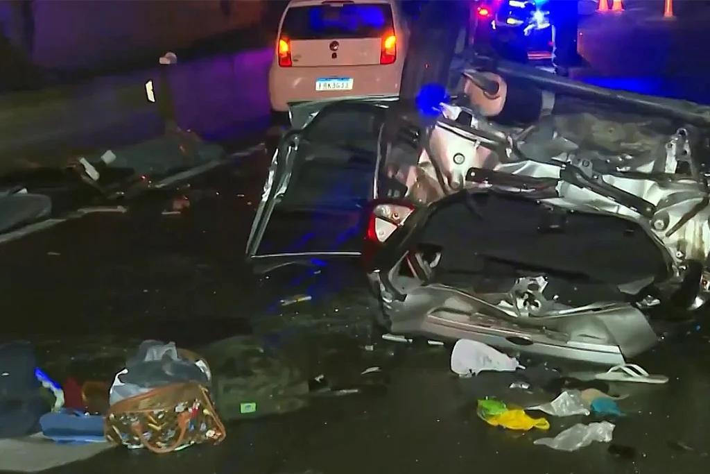 Ele passou pela mureta de proteção e despencou de uma altura de 10 metros na pista abaixo. O carro era dirigido por um homem e quatro pessoas também estavam com ele. O motorista e três mulheres morreram. Uma outra passageira, de 23 anos, sobreviveu. Teve apenas ferimentos leves e foi levada para um hospital nas proximidades.