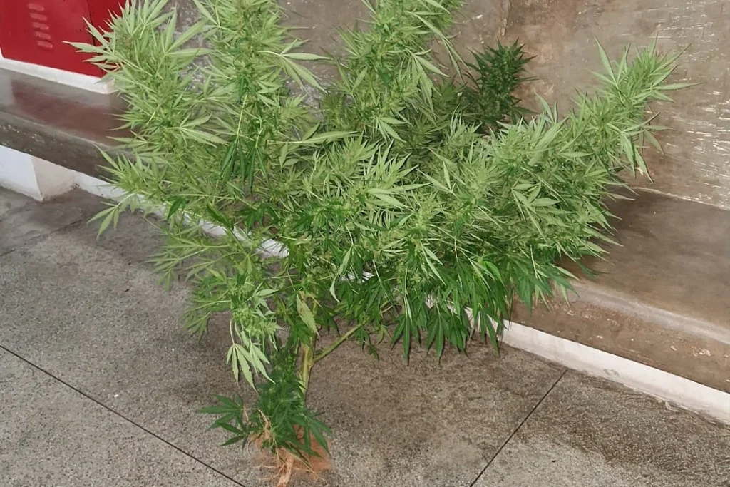 Durante a varredura no imóvel, não foi encontrada nenhuma das pessoas envolvidas na desavença. Contudo, nos fundos do quintal, a equipe localizou uma planta aparentemente de maconha.