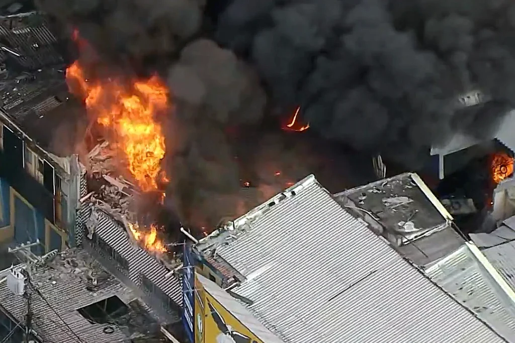 Incêndio de grandes proporções atinge galpão no Rio